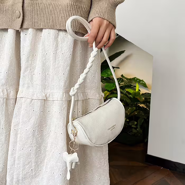 ▶名稱/麻花背帶皮質小斜包×斜背包×黑色