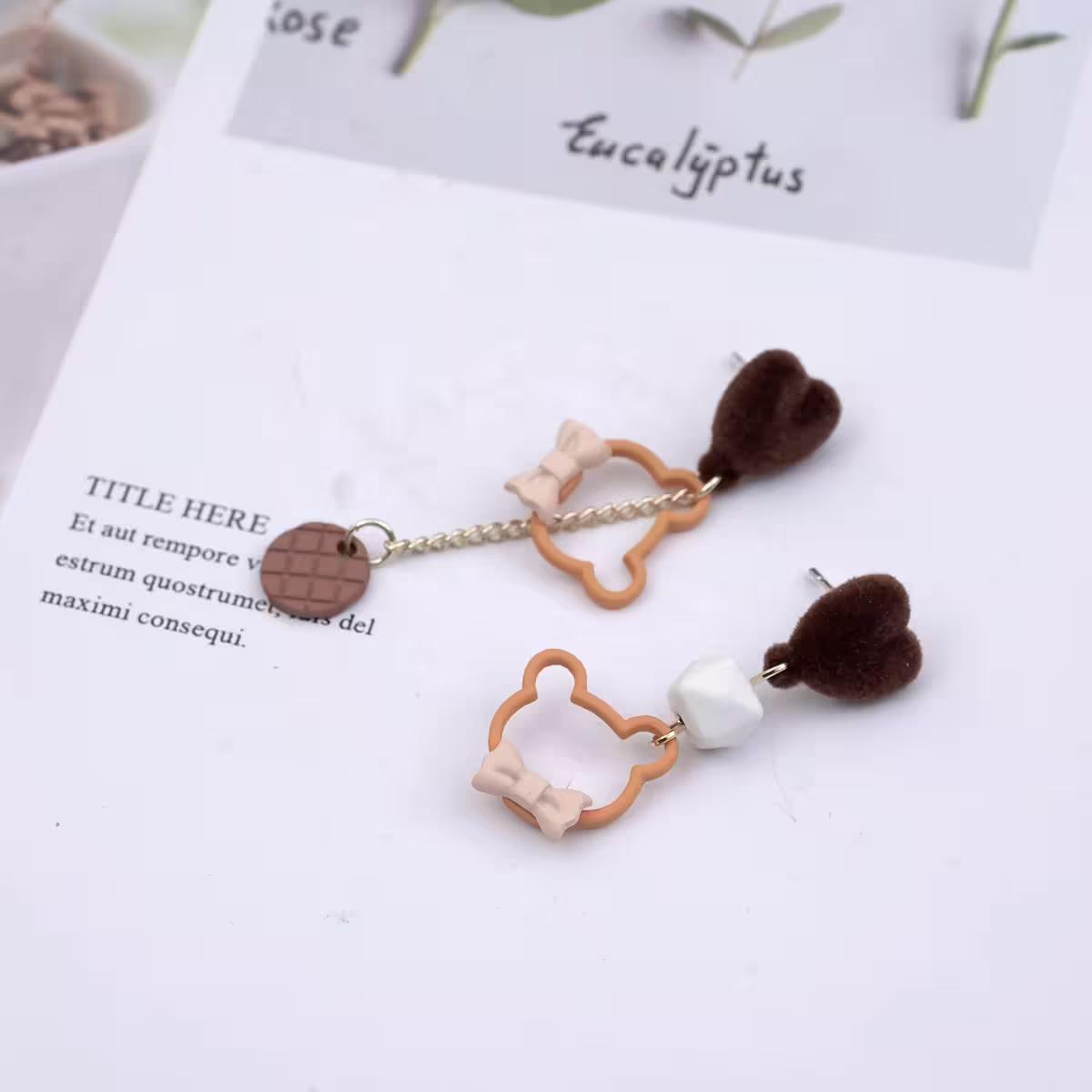 ▶名稱/絨毛愛心小熊餅乾×不對稱吊墜耳環