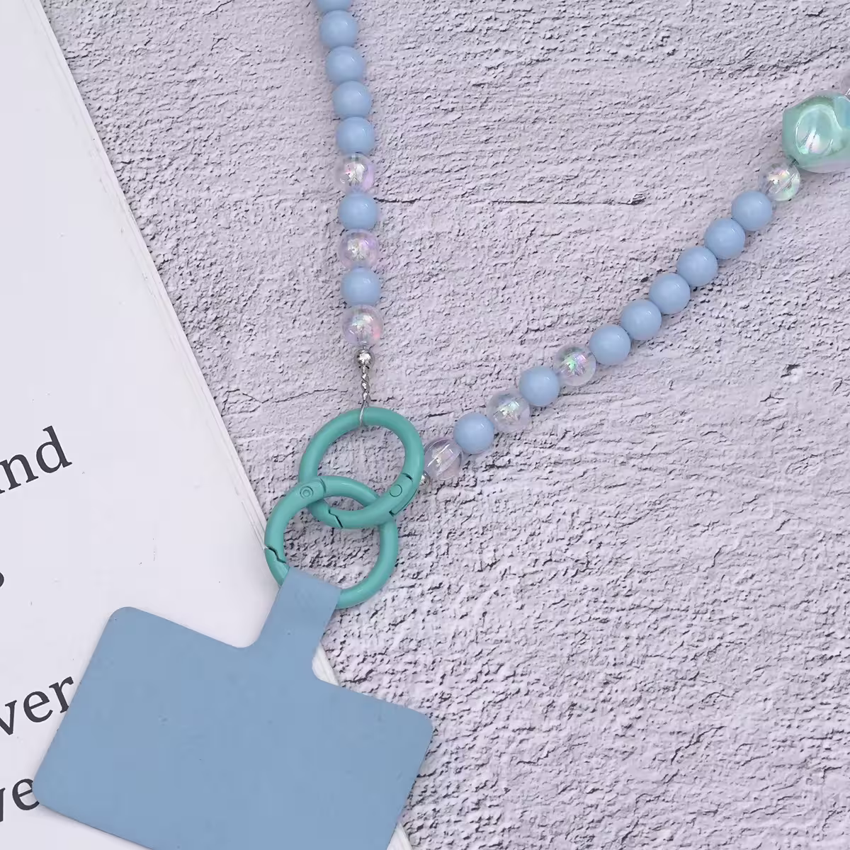 ▶名稱/兔兔糖果圓珠×手機斜背雙勾掛繩×藍色