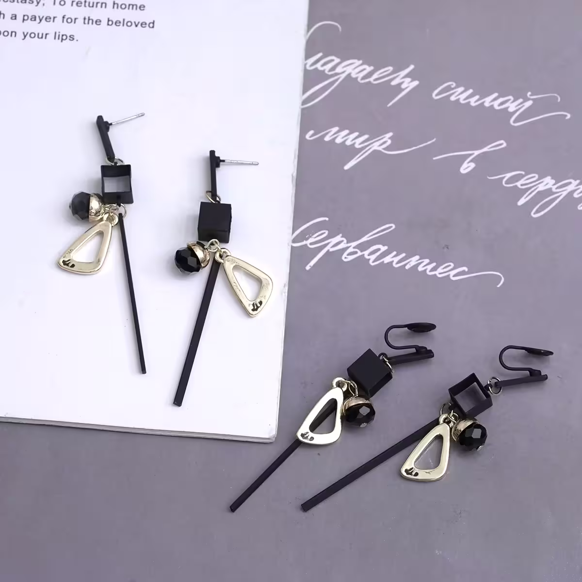 ▶名稱/黑色幾何超長方塊×蚊香盤U型耳夾