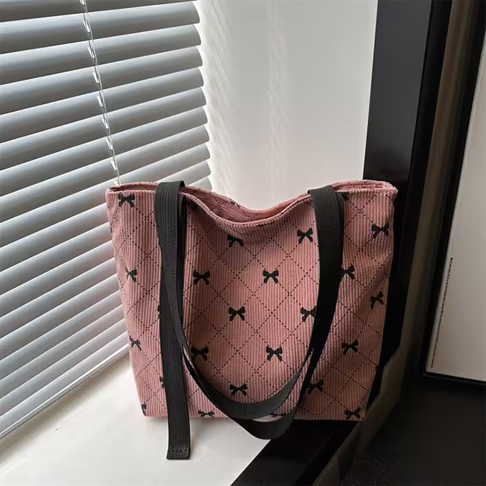 ▶名稱/甜美蝴蝶結燈芯絨×肩背包×粉紅