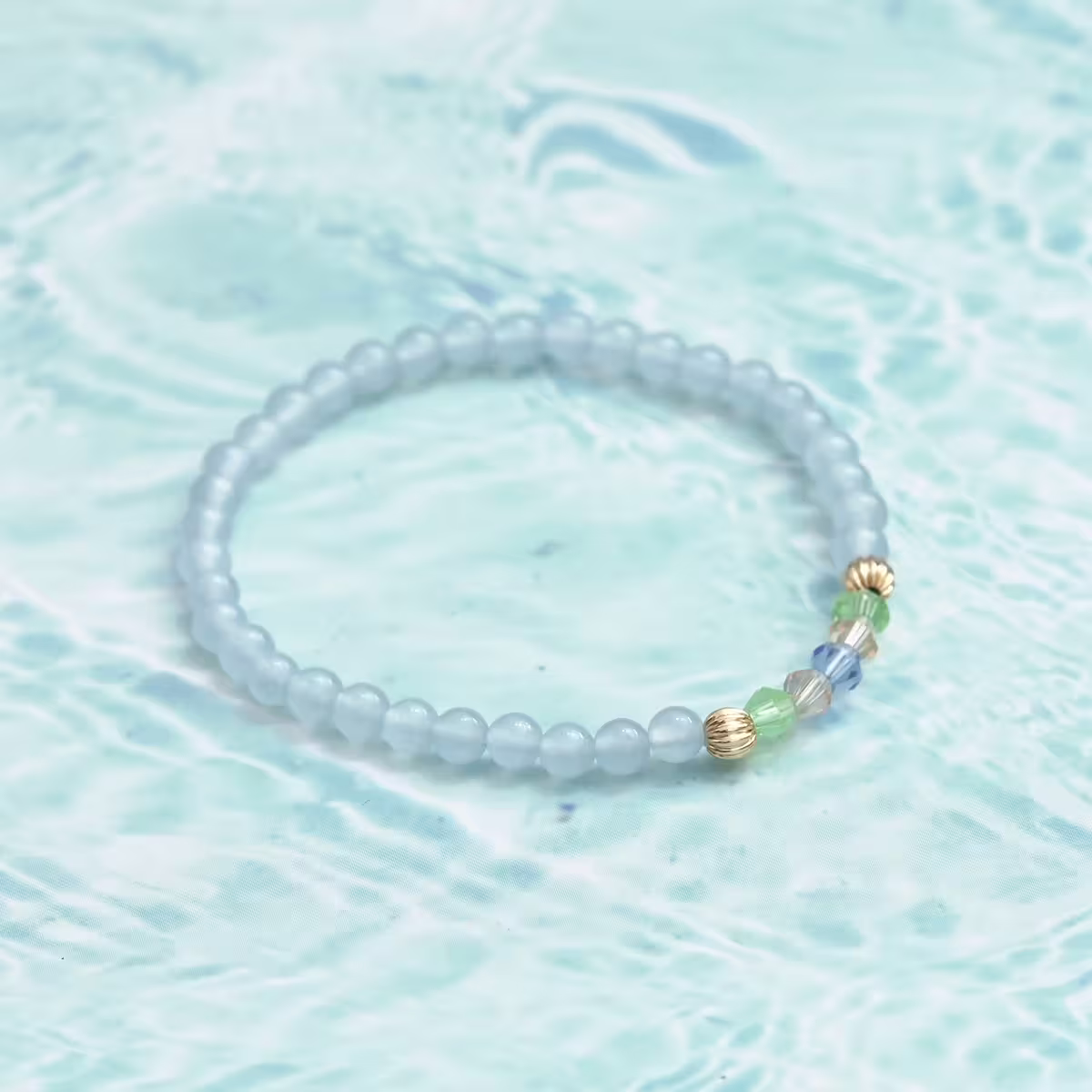 ▶名稱/水藍寶海鹽碎冰×固定式串珠手鍊