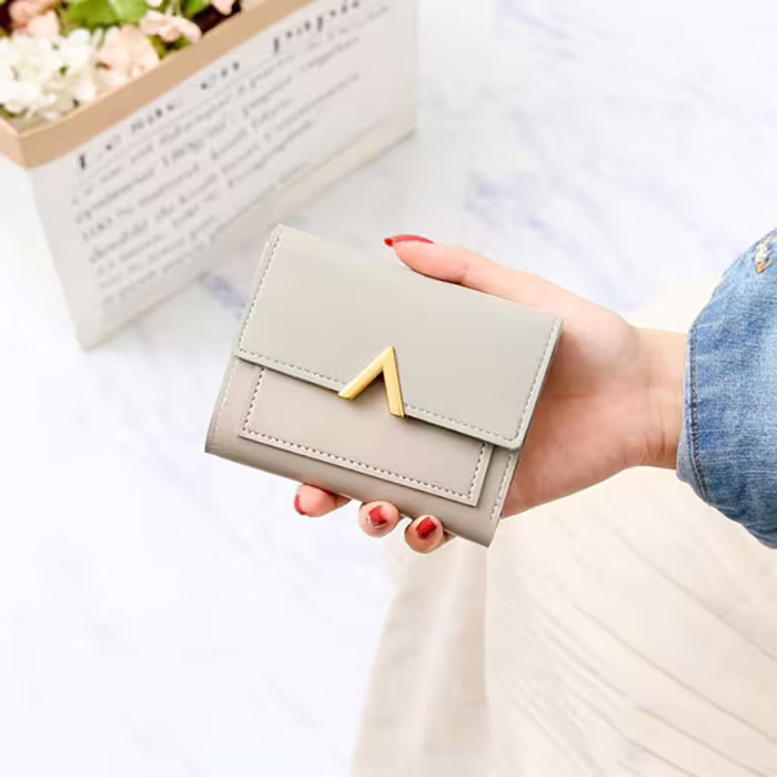 ▶名稱/金屬V字磨砂麂皮×三折短皮夾