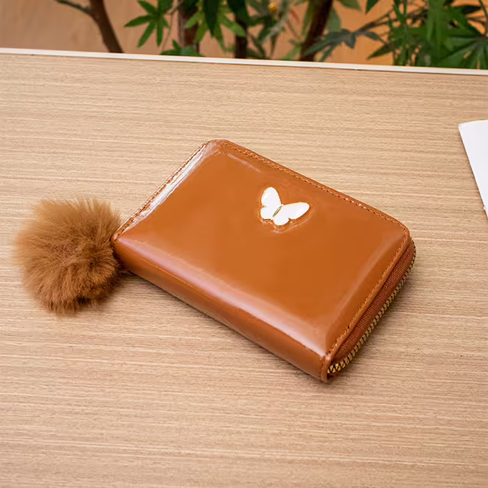 ▶名稱/亮漆皮革白蝴蝶毛球×拉鍊短皮夾