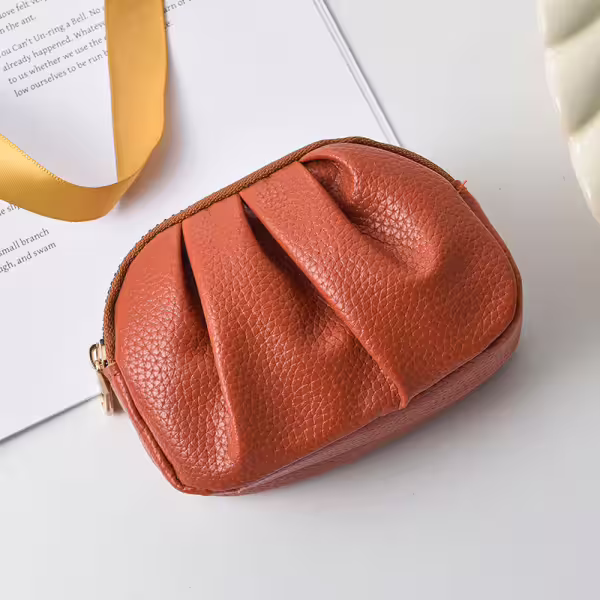 ▶名稱/單色荔枝紋抓皺×雙層拉鍊零錢包