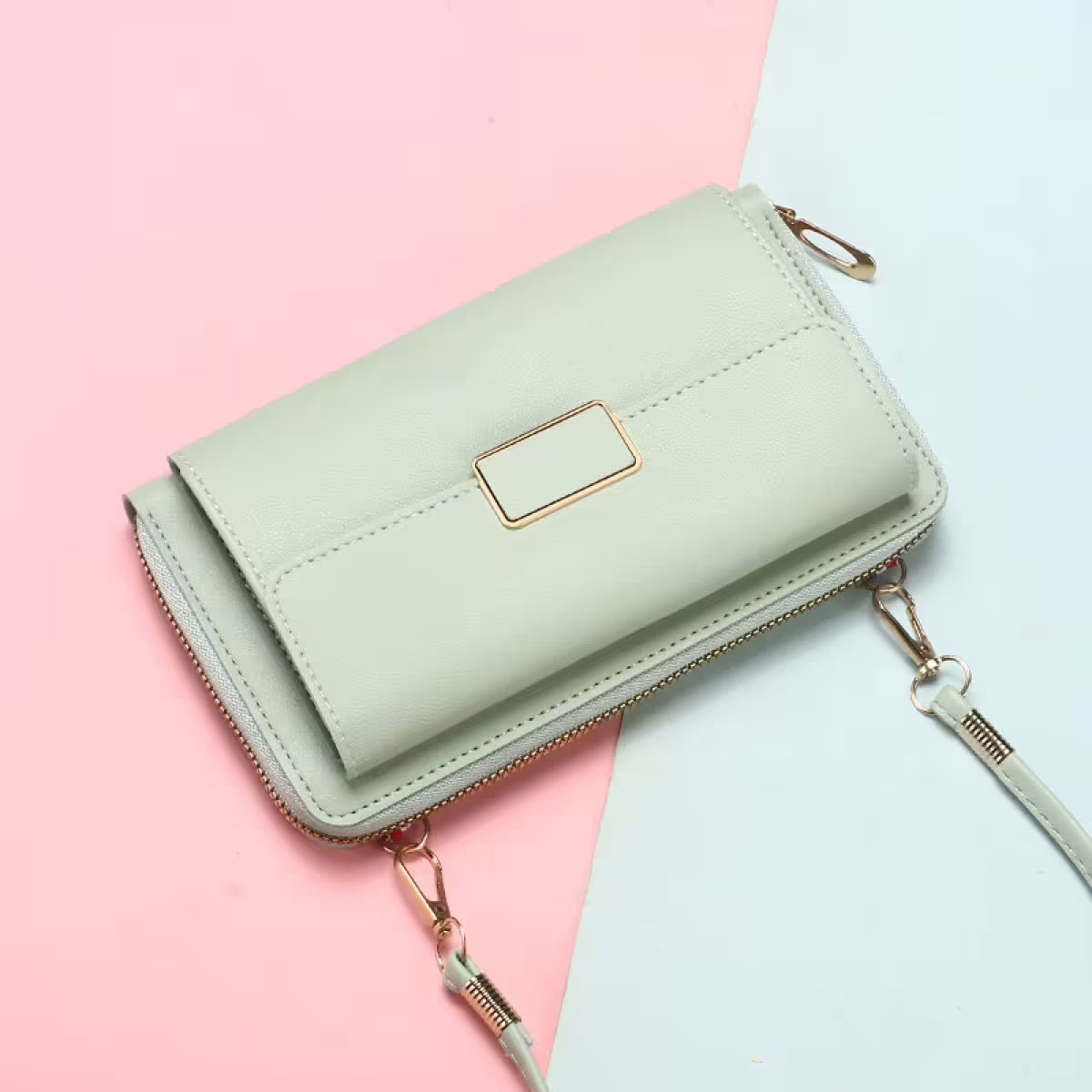▶名稱/雙層口袋皮革×可斜背×手機拉鍊長皮夾
