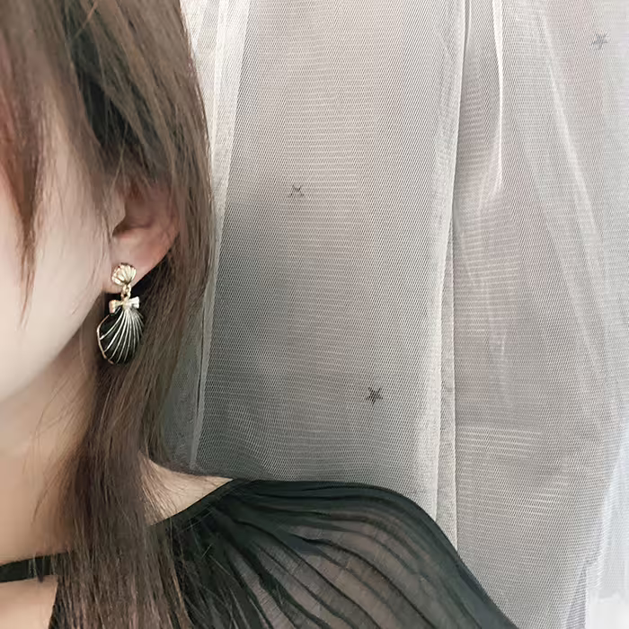 ▶名稱/黑色貝殼珍珠×蚊香盤U型耳夾