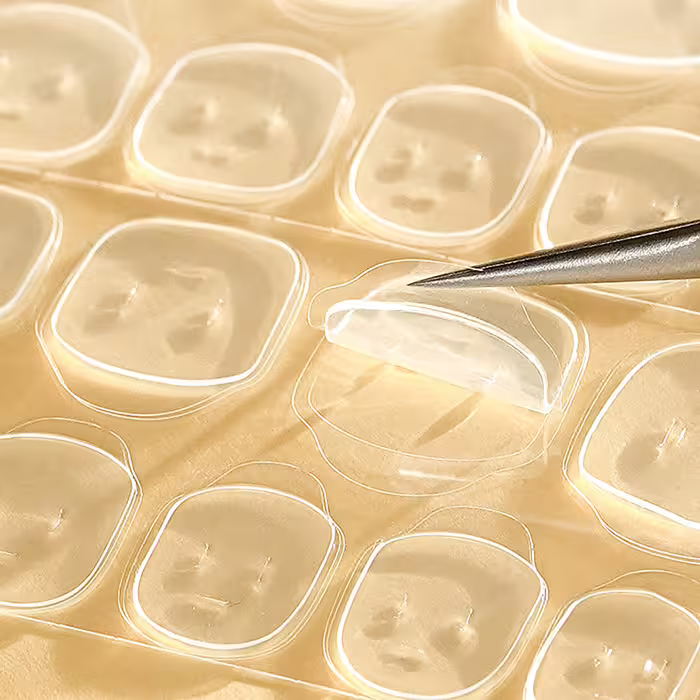 5. 選擇尺寸適合的果凍膠,貼在指甲上,靠近指甲根部位置。