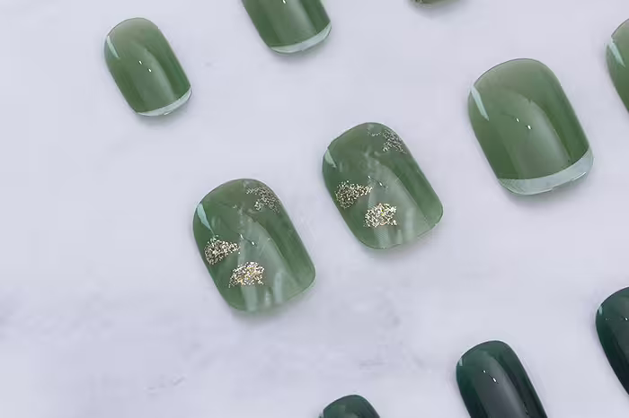 綠金珍珠魔鏡亮面×穿戴式手指甲片×二十四入-第1張
