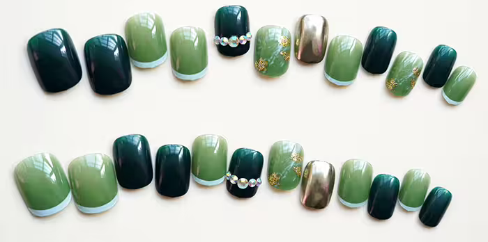 綠金珍珠魔鏡亮面×穿戴式手指甲片×二十四入-第3張