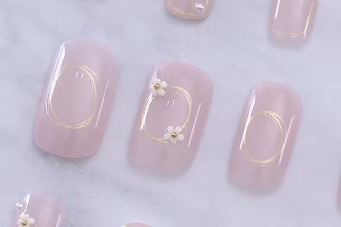 粉嫩冰透小白花亮面×穿戴式手指甲片×二十四入