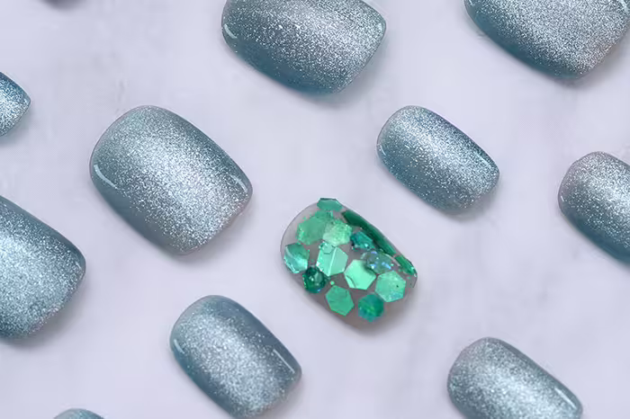 5. 把甲片貼上,背面數字為指尖位置,壓緊5秒左右。