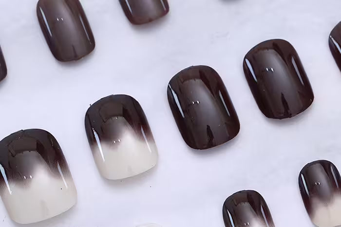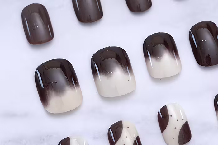 拿鐵褐棕漸白亮面×穿戴式手指甲片×二十四入