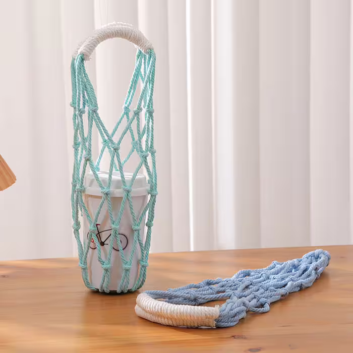 - 撞色鏤空網編×飲料水瓶提袋×藍白