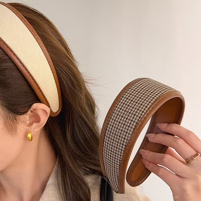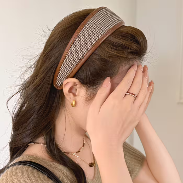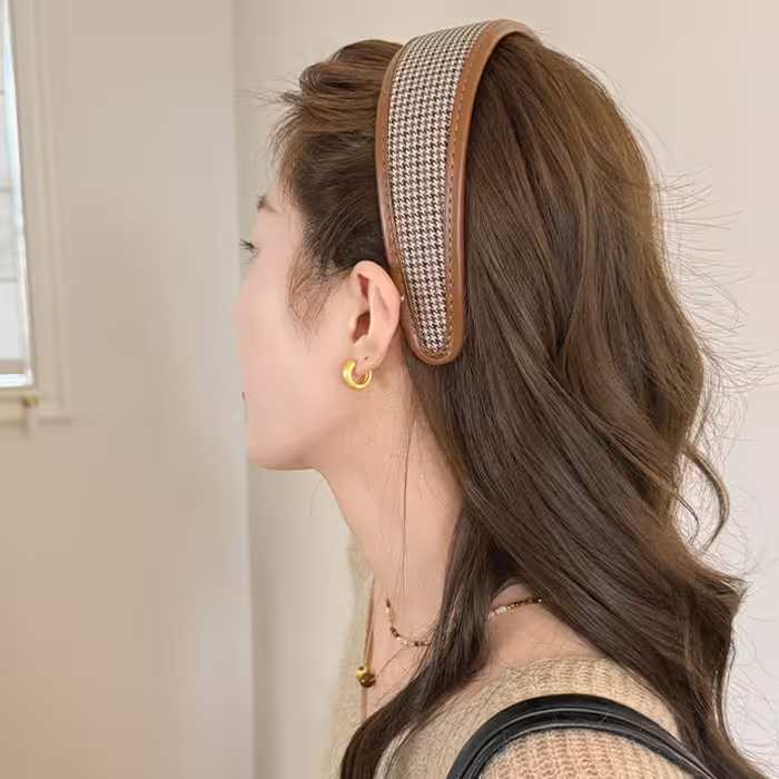 ▶名稱/皮質包邊千鳥紋×髮箍造型