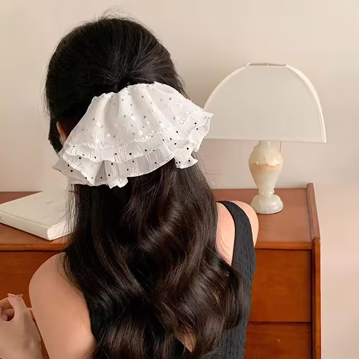 ▶名稱/白紗點點蕾絲裙擺×大腸髮束
