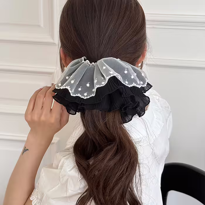 ▶名稱/黑白點點蕾絲裙擺×大腸髮束