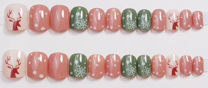 紅綠聖誕小鹿亮面×穿戴式手指甲片×二十四入