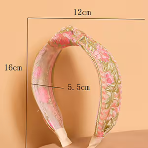 ▶名稱/扭結鵝黃藍花刺繡×髮箍