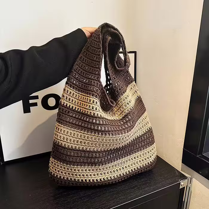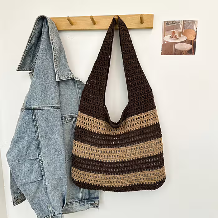 ▶名稱/條紋拼接鏤空針織×肩背包