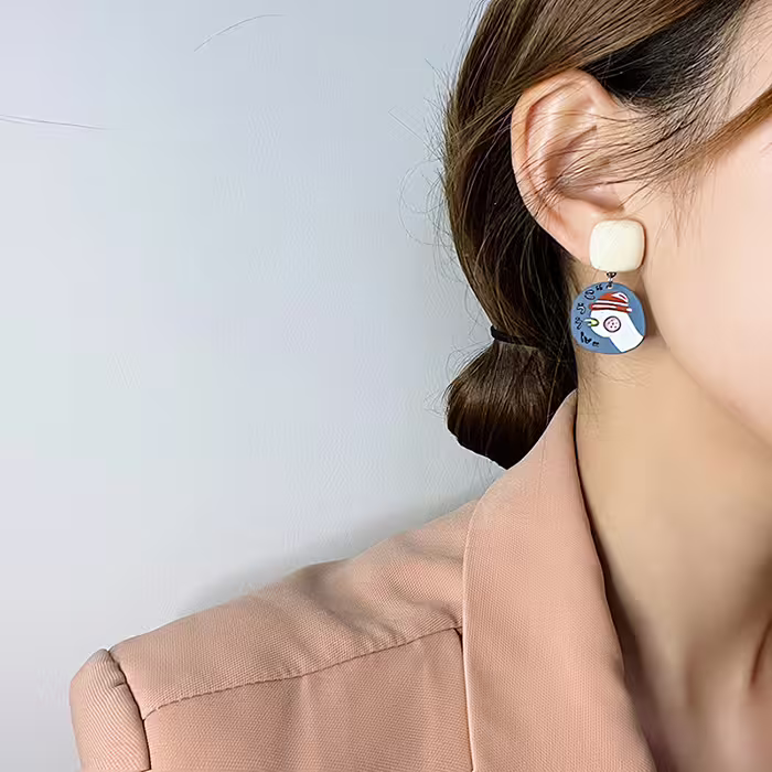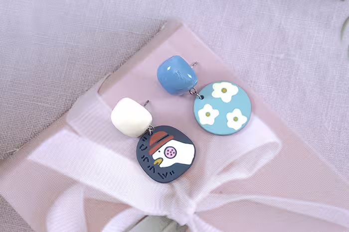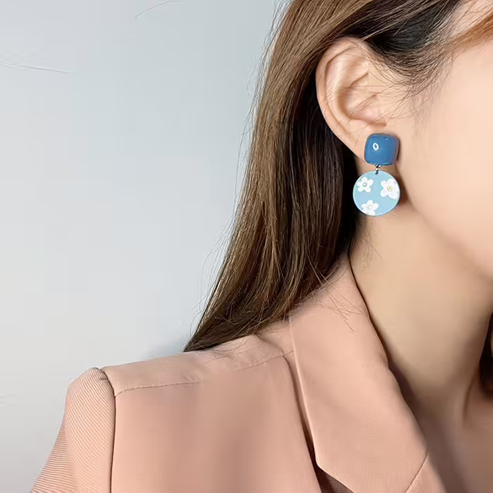 ▶名稱/加油鴨藍色小花×不對稱吊墜耳環