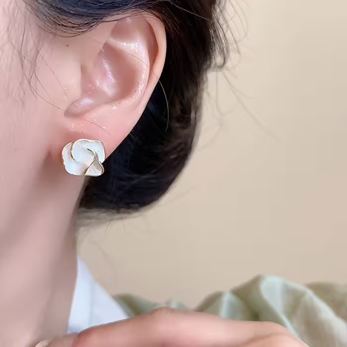 ▶名稱/純白山茶花×不對稱蚊香盤U型耳夾