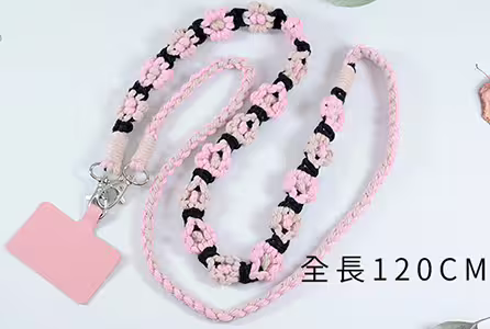 ▶名稱/粗粉黑花朵辮子雙拼×手機斜背雙勾掛繩