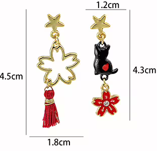 ▶名稱/黑貓紅櫻流蘇×不對稱三角耳夾