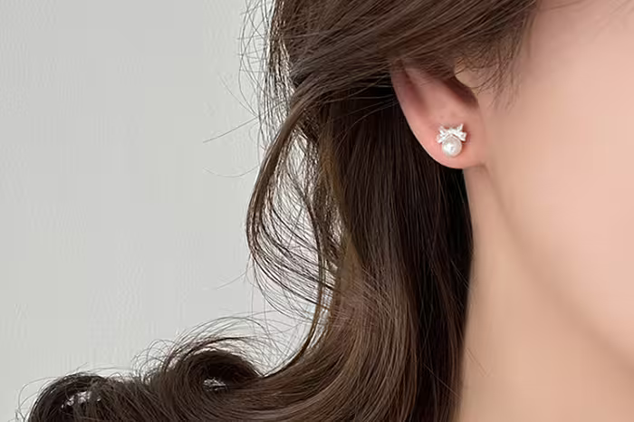 ▶名稱/925銀針×蝴蝶結珍珠×轉珠耳環