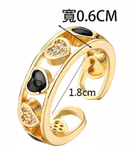 ▶名稱/金黑愛心鏤空晶鑽×開口戒指