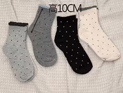 ▶名稱/花邊點點×低筒襪×四雙套件襪子組