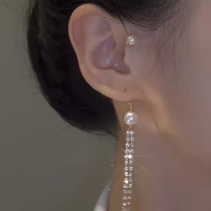 ▶名稱/金色珍珠流蘇晶鑽×單邊耳掛