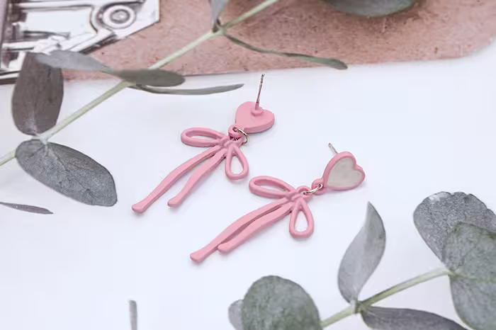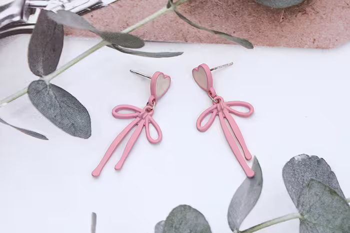 ▶名稱/愛心粉紅蝴蝶領結×吊墜耳環