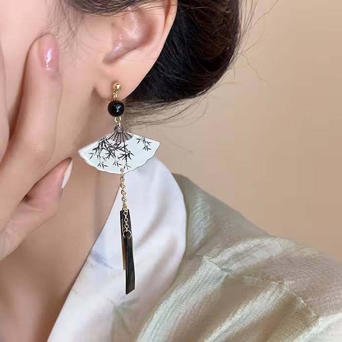 ▶名稱/竹影古扇×蚊香盤U型耳夾