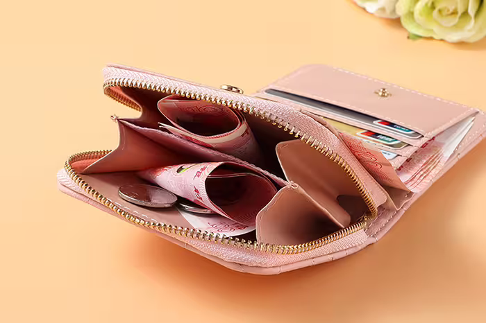 ▶名稱/時尚格紋×對折短夾×拉鍊零錢包