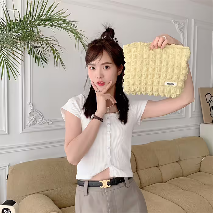 ▶名稱/泡芙雲朵包×化妝包×黃色