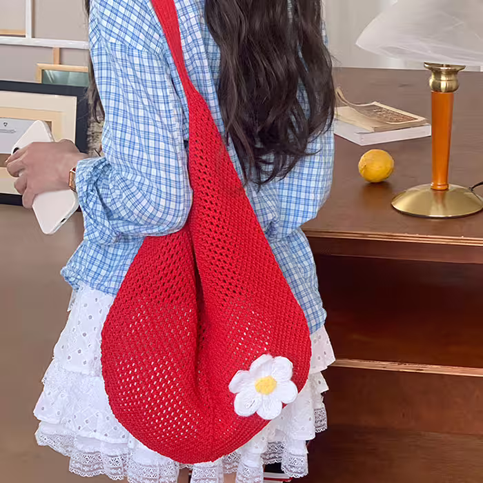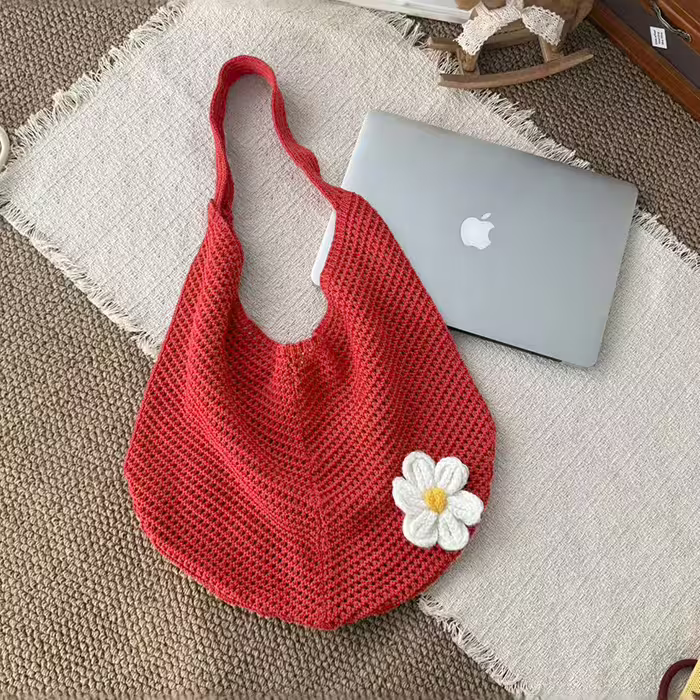 慵懶小花針織×肩背包×紅色-第1張