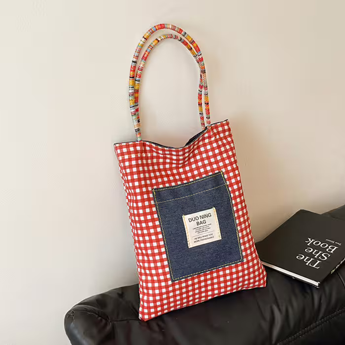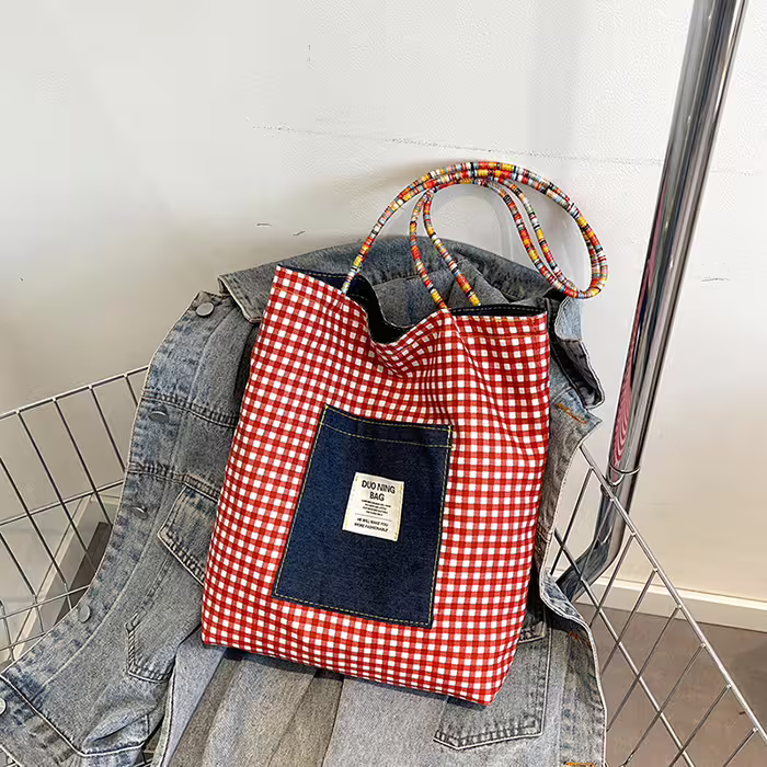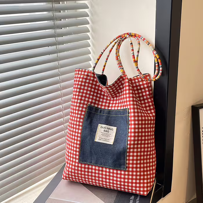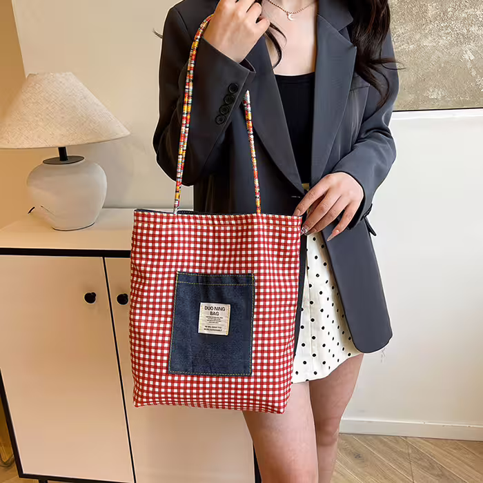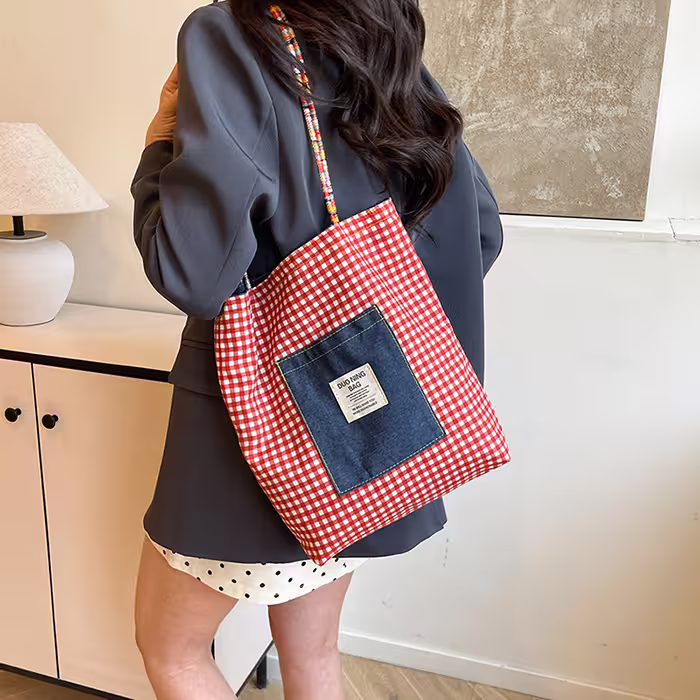 ▶名稱/單寧紅格紋×雙面肩背包