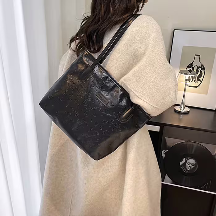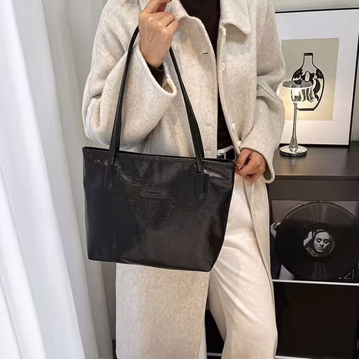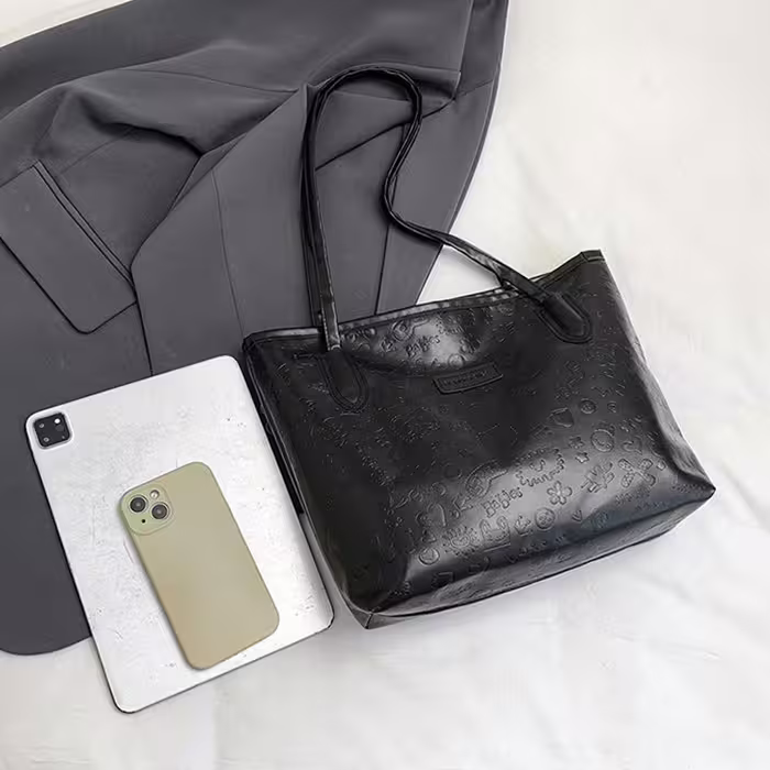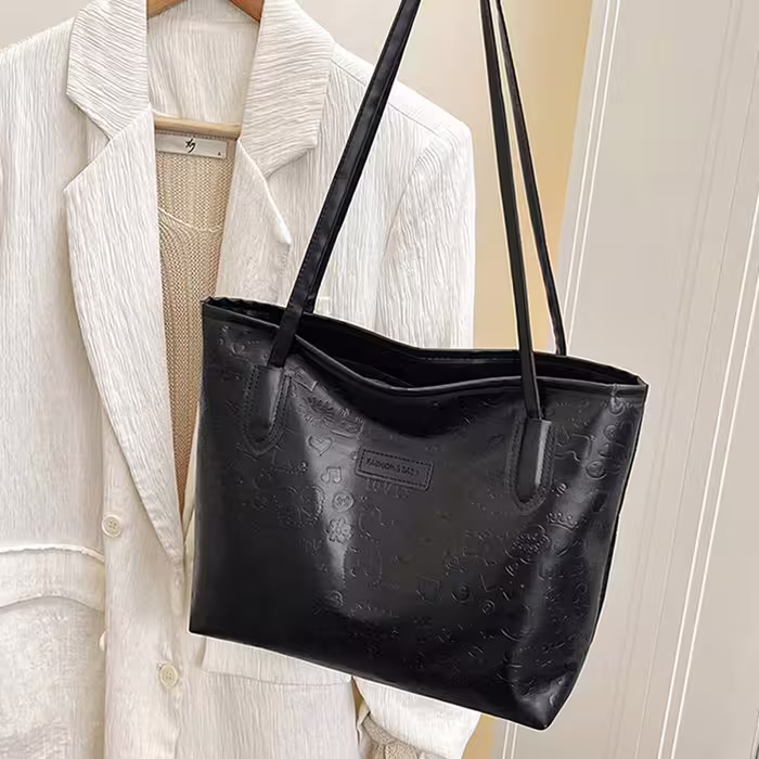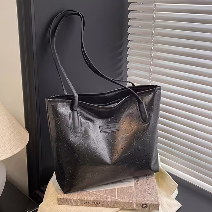 童趣壓紋包邊皮革×肩背包×黑色-第1張