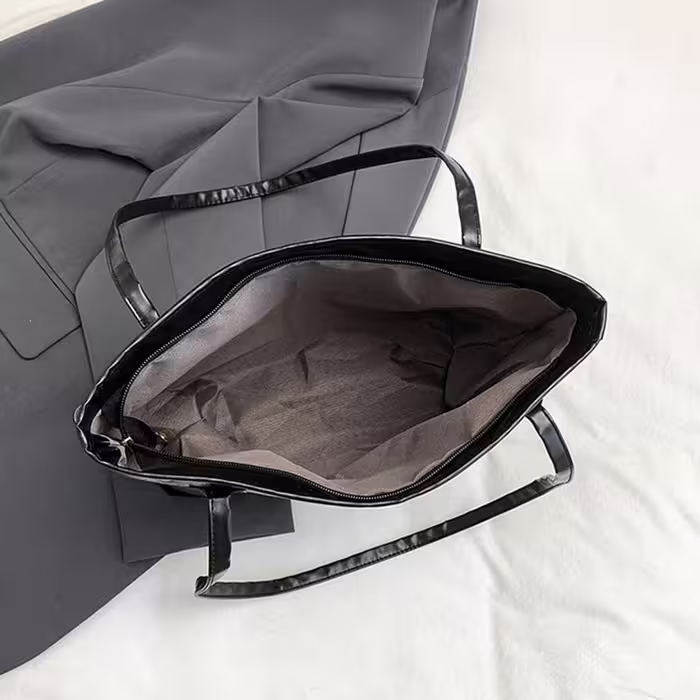 童趣壓紋包邊皮革×肩背包×黑色-第5張